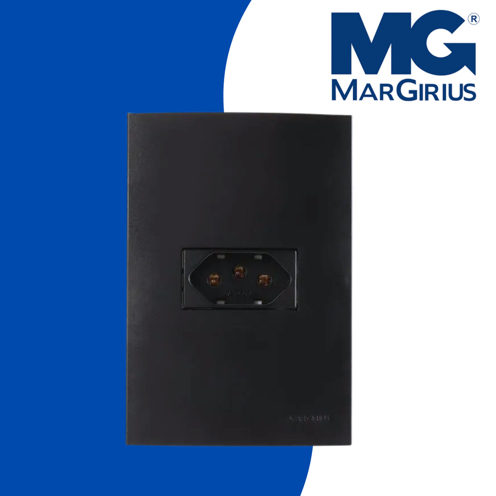 KIT C/ 5 PLACA 4X2 1 POSTO C/ SUP. + TOMADA 10A / 20A PT FOSCO CLEAN EBONY MARGIRIUS